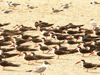 Start the day with Bacon aand eggs and hash browns for breakfast. At about 11:00AM went down to Rockport Beach Park to do a little "Beach Bumming". Wadered up and down the beach for a while. Took some pictures of "Skimmers".