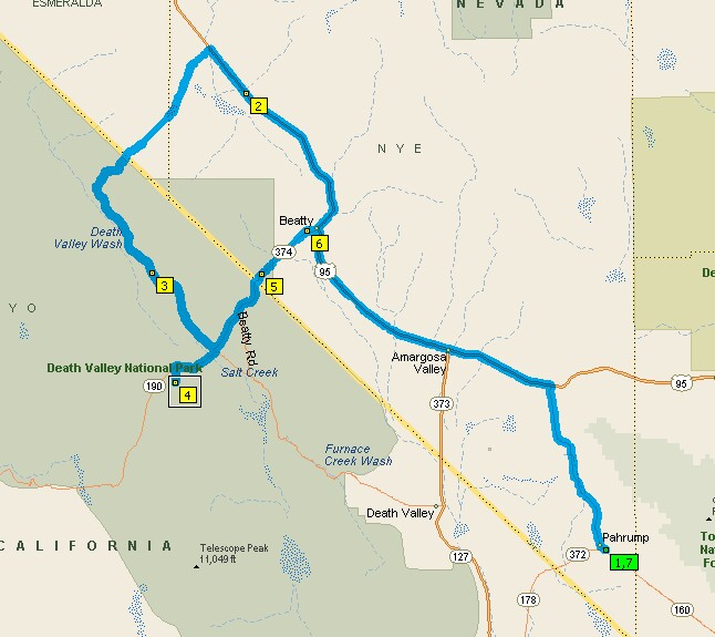 Decision Day - what route to home. A couple of options, back to Vegas and up I 15 as we have always done, or north on 95 and up to Ely and Wendover, then to Salt Lake City and home on I 15, or new to us, up 95 and then over to Reno, north to I 5 for a short distance, then through Klamath Falls, OR, and into the Columbia basin and work home from there through customs at Yahk, BC. Shouldn't be too much snow at this time of year, but we will be going through some high country. Lets take a shot at it. Decision done!! Get onto "Streets and Trips" and lay it out.